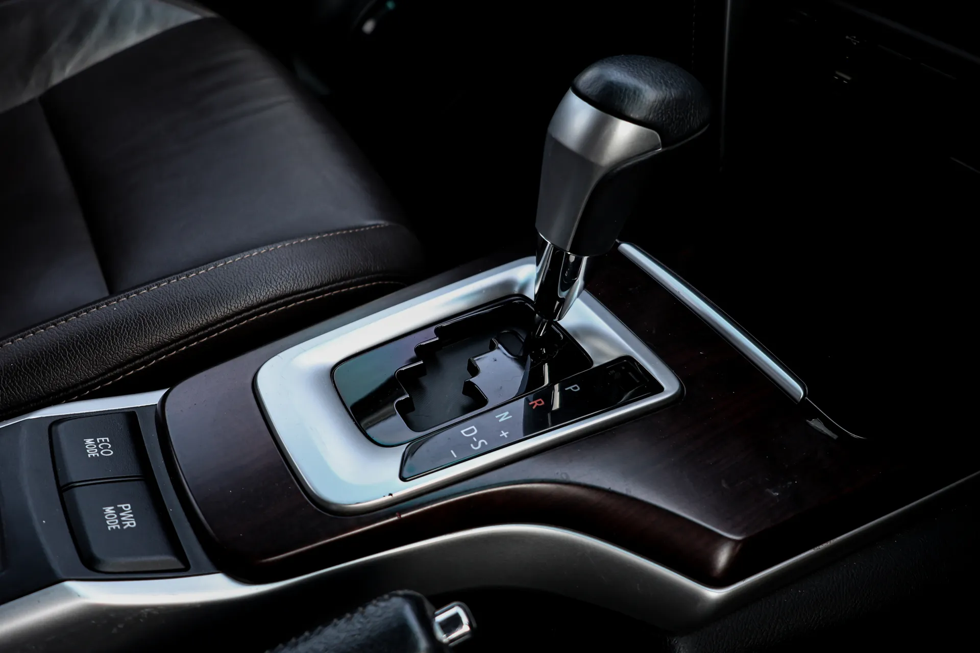 ✅ หัวเกียร์หุ้มหนัง พร้อมแถบสีเงิน ฐานเกียร์ตกแต่งลายไม้ / แถบสีเงิน