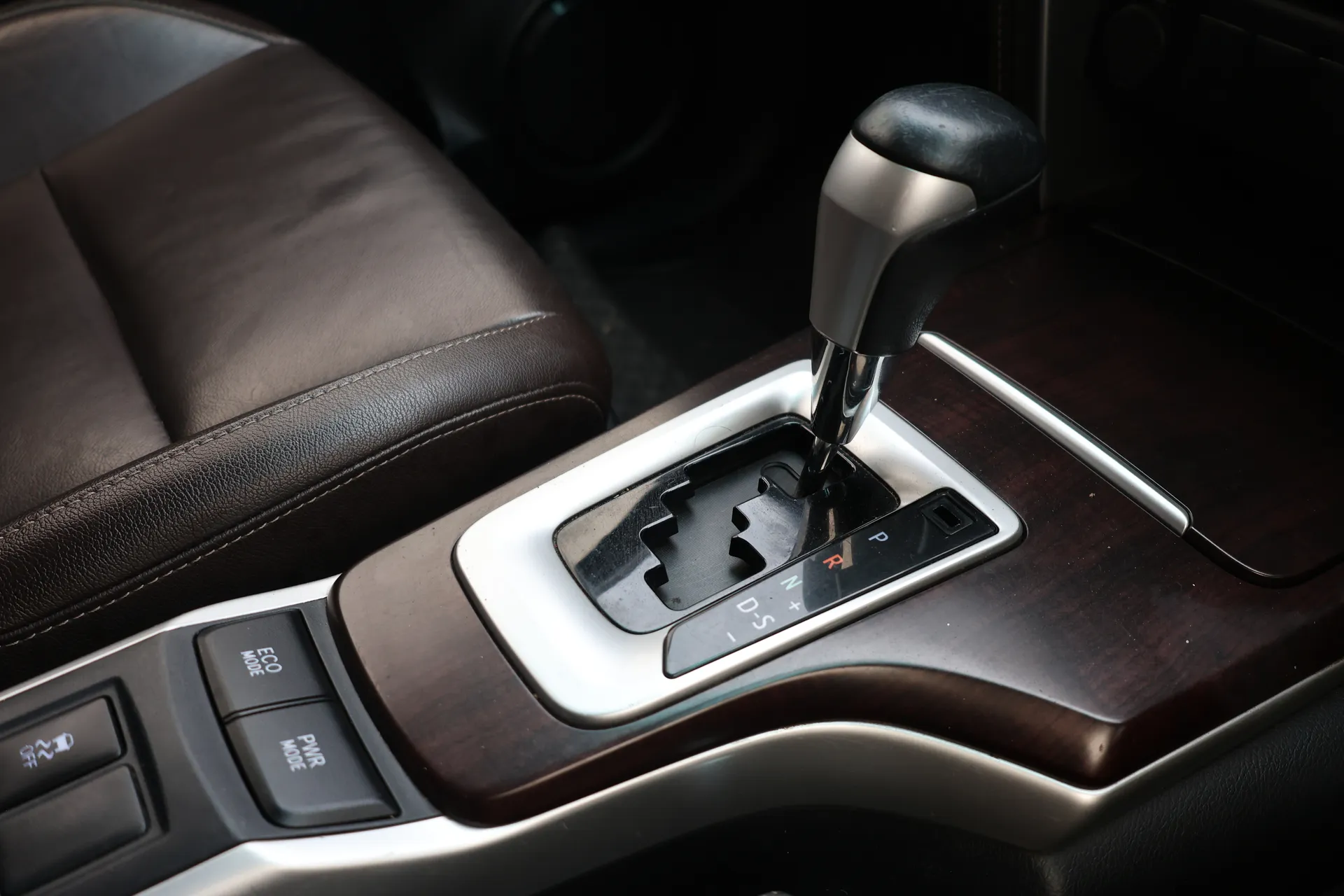 ✅ หัวเกียร์หุ้มหนัง พร้อมแถบสีเงิน ฐานเกียร์ตกแต่งลายไม้ / แถบสีเงิน