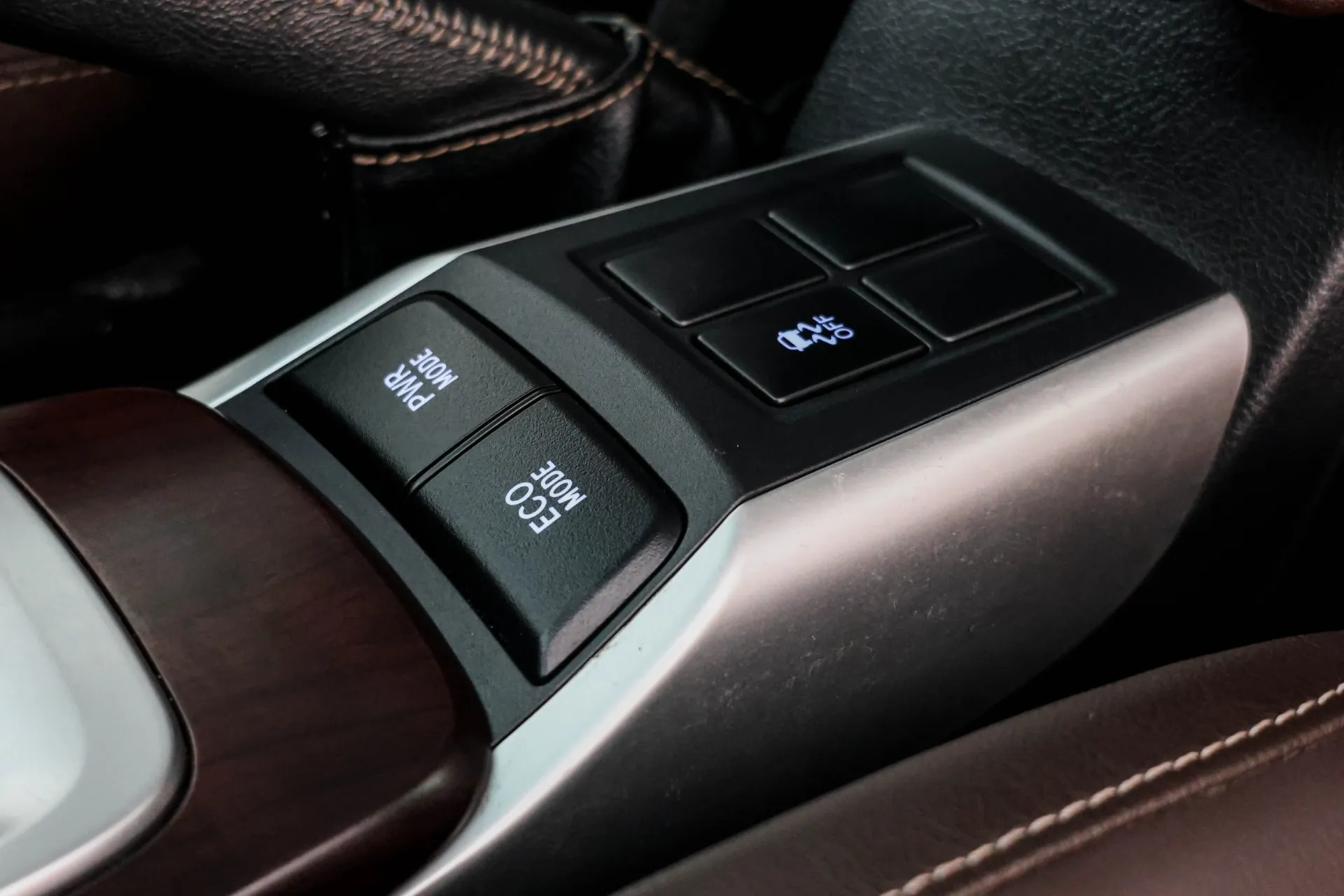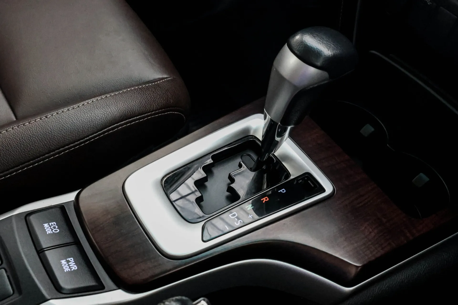 ✅ หัวเกียร์หุ้มหนัง พร้อมแถบสีเงิน ฐานเกียร์ตกแต่งลายไม้ / แถบสีเงิน