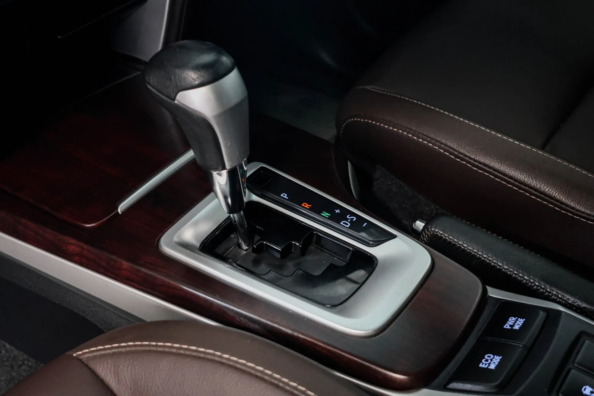✅ หัวเกียร์หุ้มหนัง พร้อมแถบสีเงิน ฐานเกียร์ตกแต่งลายไม้ / แถบสีเงิน