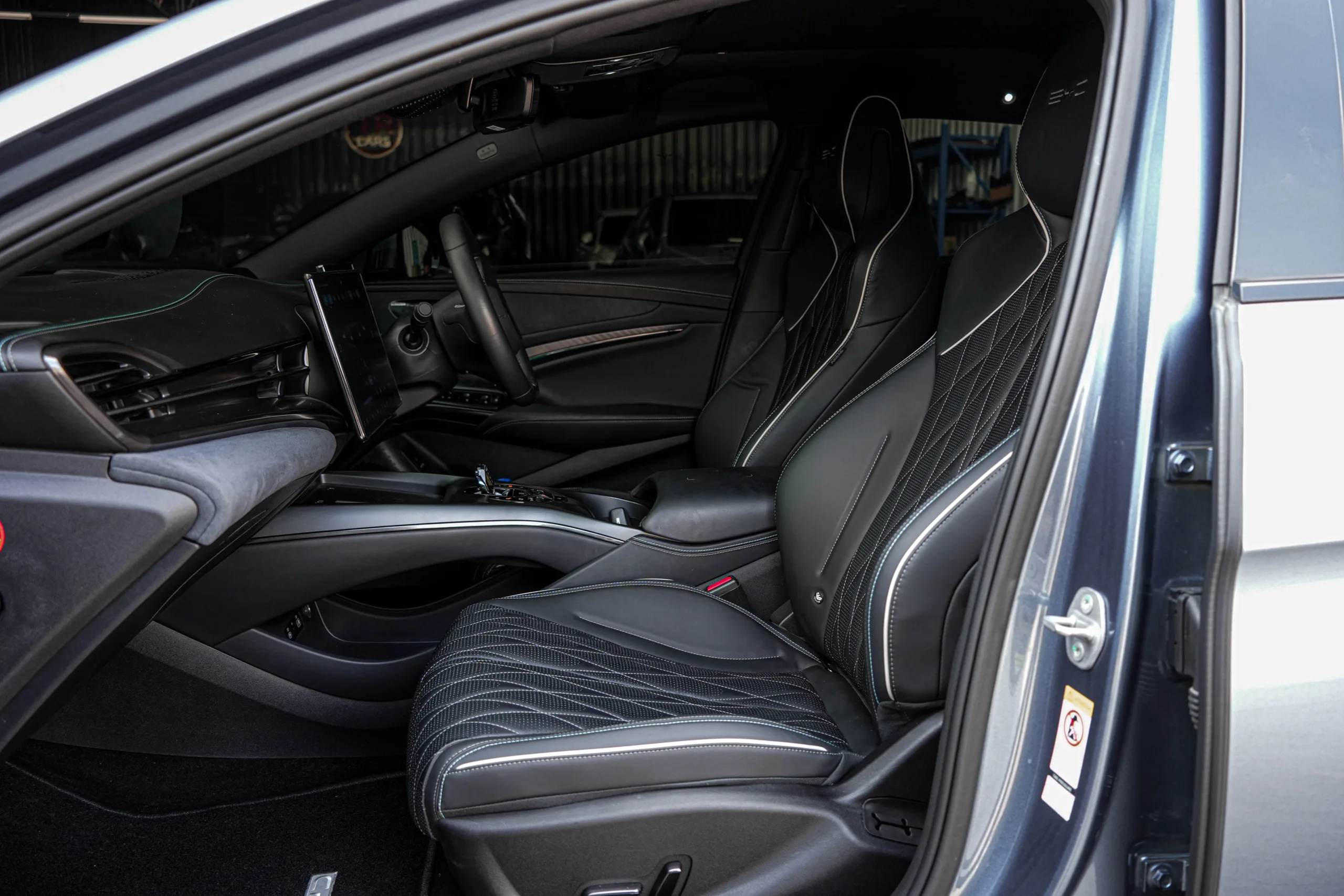 รถไฟฟ้าซีดานดีไซน์สปอร์ต รุ่น Premium สีเทาฟ้า ภายในเบาะทรงสปอร์ต ไมล์เพียง 41,012 ขับแรง เงียบ ล้ำสมัย เทคโนโลยีครบ